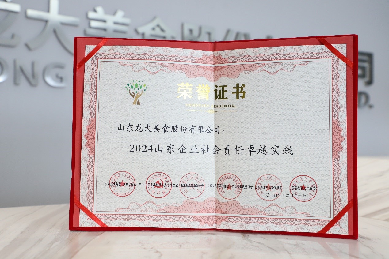 龍大美食榮膺“2024山東企業社會責任卓越實踐”殊榮