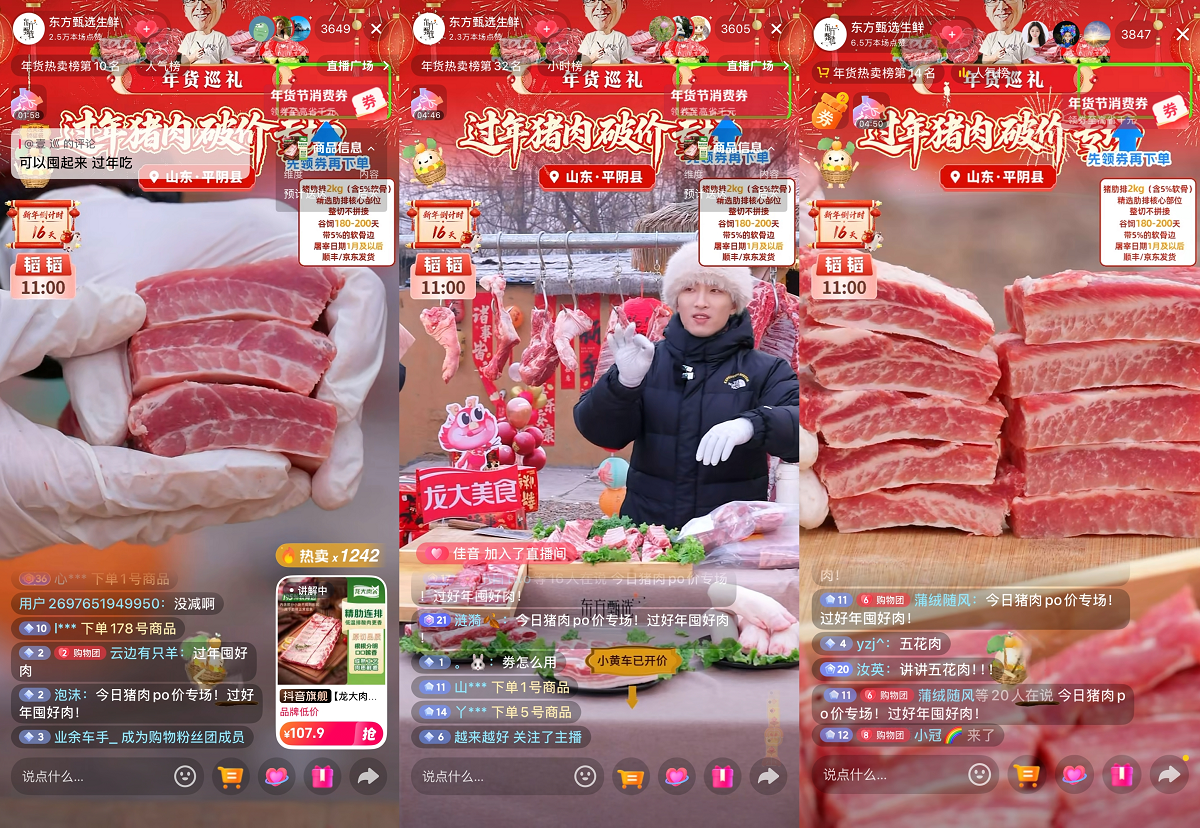 2月1日,東方甄選生鮮號“過年豬肉 破價專場”直播在山東濟南平陰縣圓滿落幕。本場直播聚焦春節家庭品質餐飲需求,農業產業化國家重點龍頭企業龍大美食的豬肋排、五花肉等多款核心產品贏得消費者熱烈響應,最終實現單場銷售額400余萬元。