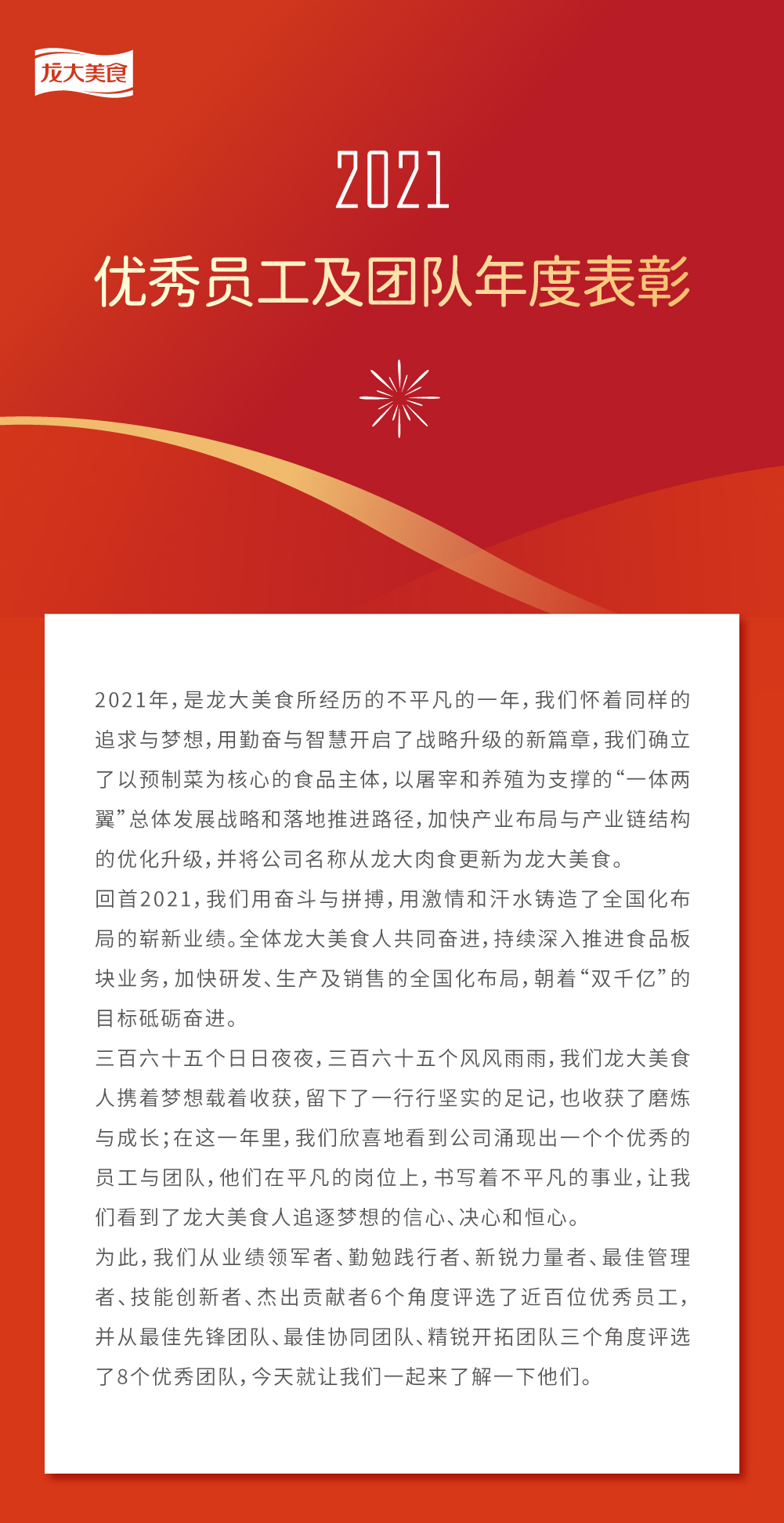 【致敬奮斗者】龍大美食2021年度優秀員工及團隊表彰正式發布!